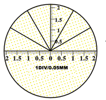 分劃板最小格值0.05mm,分劃板最大量程 3mm(25倍帶刻度)